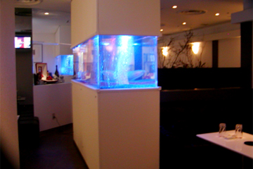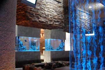 県下最大級の有名ホストクラブの店内に配置された[水]の空間達。 VIPルームに入る両脇に石組みの強烈なインパクトを誇る海水魚水槽を施工。 続いて店内真ん中には、なんと天井から水の雫が落ちるシステムで異色の空間へ。 最後に客席を仕切るのは天井まで続く大きなエアーパーテーションである。 最高のサービスを提供するお店には、最高の演出が欠かせないのである。