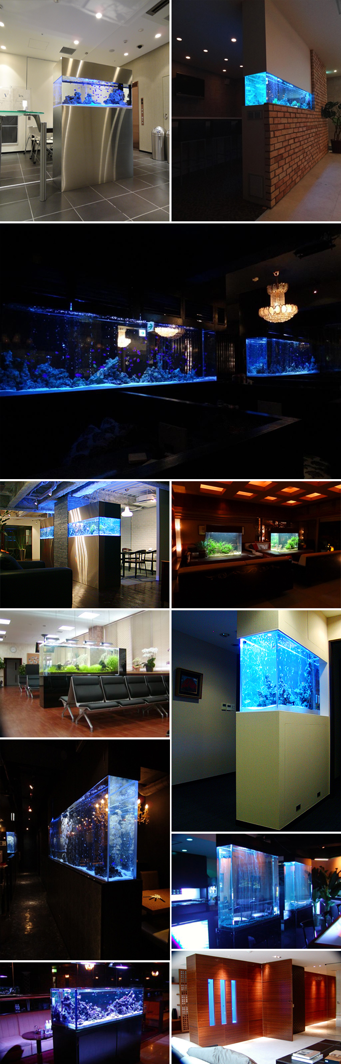 上記のプランはほんの一例であり、導入される水槽は御予算・イメージにより自由にカスタマイズ可能です。