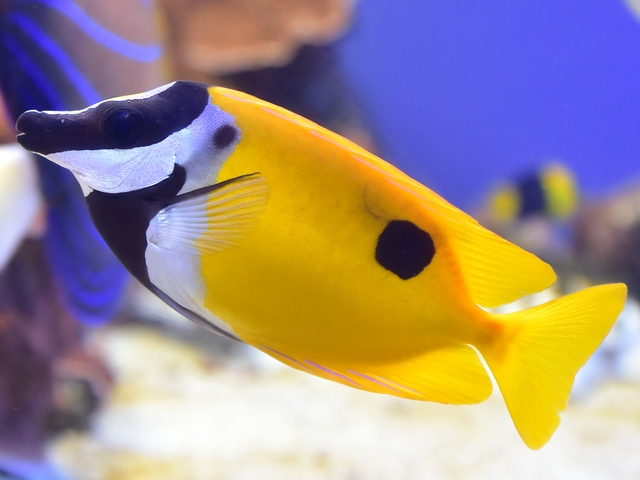 ヒフキアイゴは、黄色い体色に黒い模様が映える非常に印象的な海水魚です。
